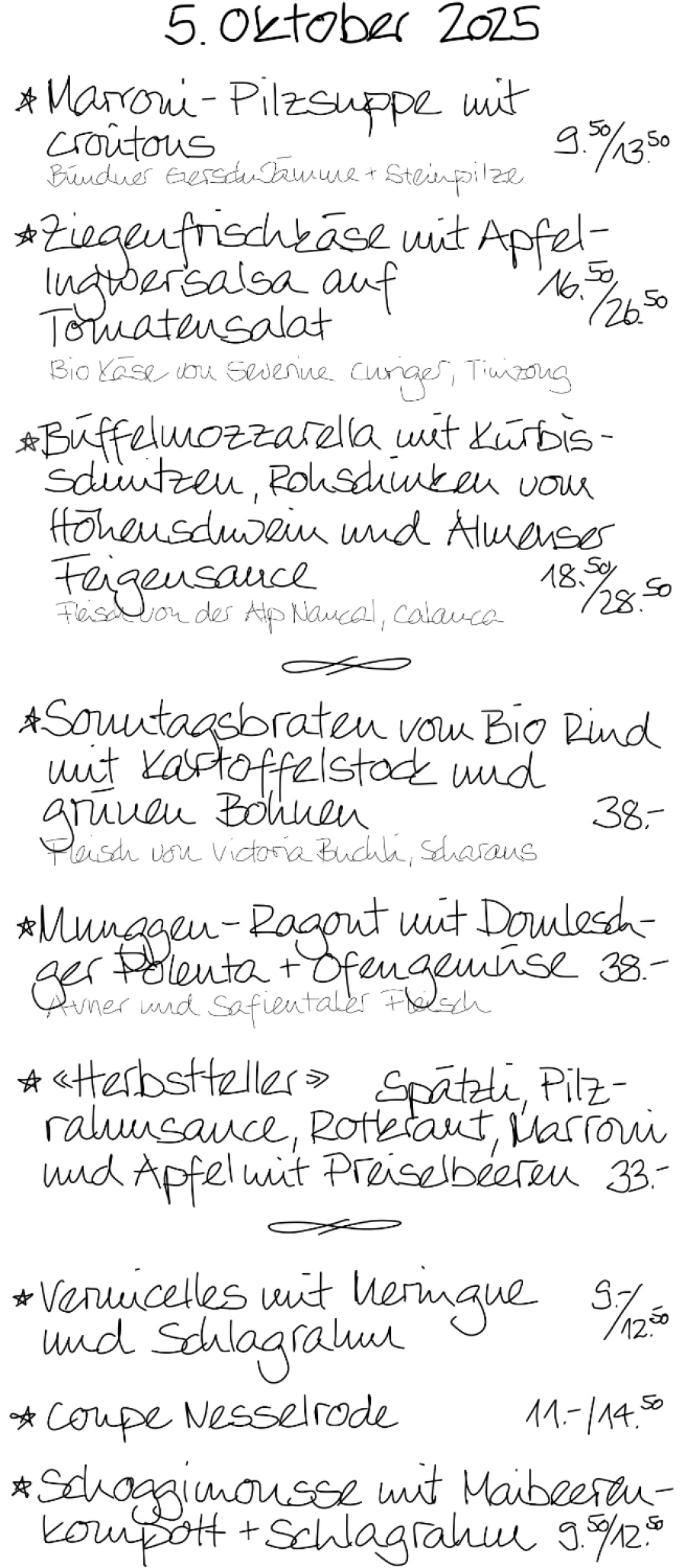 Die Wildsaison 2025 ist voll am laufen! Wir servieren auch dieses Jahr ausschliesslich einheimisches Wildfleisch, herzlichen Dank an die Domleschger...