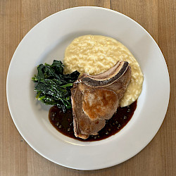 Unsere zwei (Alp-) Schweine haben einen glücklichen Sommer auf der Alp Naucal, zuhinterst im Calancatal, bei Doris Galfetti von Almens verbracht und feinste Ziegenmilchschotte gefuttert. Weil die Alp nicht zertifiziert ist, dürfen wir sie nicht Alpschweine nennen - darum haben wir sie «Höhenschweine» getauft. Die verschiedenen Fleischstücke servieren wir eins ums andere in einem feinen Menü. Übrigens - Rohschinken und Speck auf dem Landhus-Plättli stammen ebenfalls vom Höhenschwein!