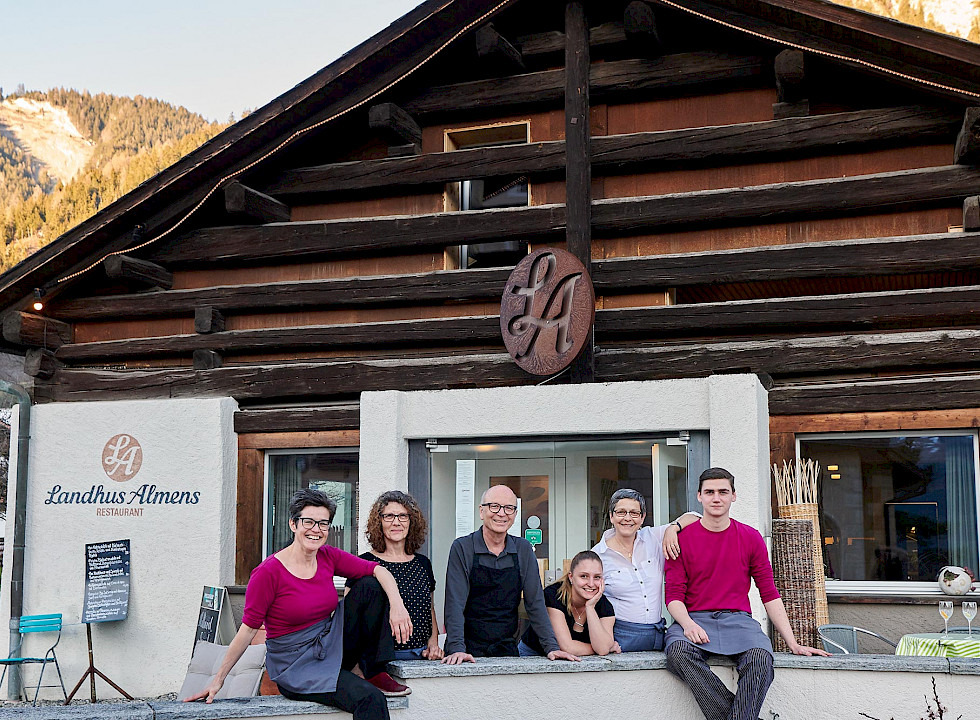 Im Service begrüssen euch Lidia, die nichts aus der Ruhe bringen kann, Antoinette mit ihrer fröhlichen, besonnenen Art, Urs, der den Zmorge-Gästen jeden Wunsch von den Augen abliest und manchmal Amanda, die erfahrene Fachfrau. Ramona ist unsere neue Kollegin, sie wird sich rasch einarbeiten und die Gäste kennenlernen. Die jungen Frauen Julia & Nora servieren Teilzeit und Silvia, die den Service bis Ende 2022 geleitet hat, greift uns wenn nötig unter die Arme. In der Küche hat Thomas das Sagen und verarbeitet die frischen regionalen Produkte mit Amanda zu schmackhaften, kreativen Gerichten. Seit August 2025 macht der talentierte und motivierte Gianin die Lehre als Koch im Landhus. Für die Sauberkeit und angenehme Atmosphäre in den Zimmern sorgt Tsehaitu, die auch in der Küche tatkräftig anpackt. Dass es auf unseren Tischen immer frisch blüht, verdanken wir Elsbeth. Amanda leitet den gesamten Betrieb, Urs kümmert sich zusätzlich um die Administration und den Garten.