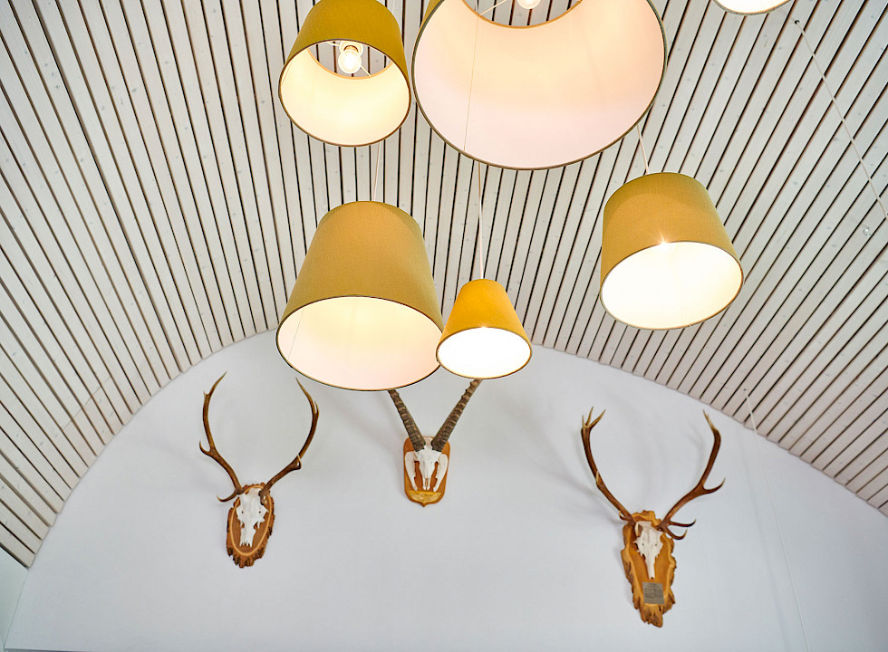 Das Restaurant ist hell und einladend, eine gute Mischung aus modern und gemütlich. Das besondere am Raum ist die gewölbte Decke mit den Lampenschirmen in verschiedenen Grüntönen. Der runde Tisch ist in die vorderste Ecke gerückt und beim Büffet lädt der lange Holztisch Einheimische, Freunde & Fremde zum zusammensitzen ein. Wo nehmen Sie am liebsten Platz?